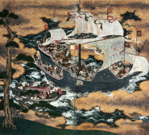 伝久隅守景筆の花鳥故事人物図押絵貼屏風