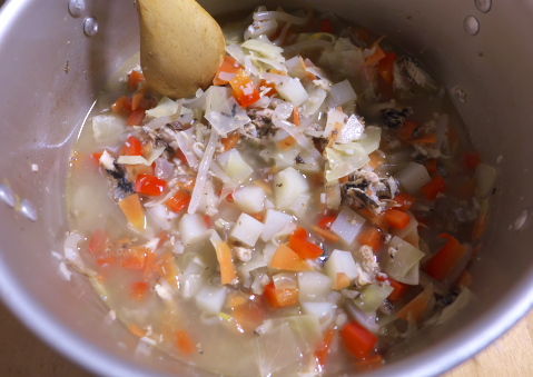 ジャガイモ・人参・ブナシメジ・キャベツ・もやし・イワシやわらか煮
