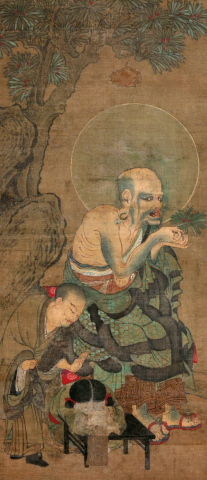 福井藩お抱え絵師の狩野了之画・開山大愚宗築賛の